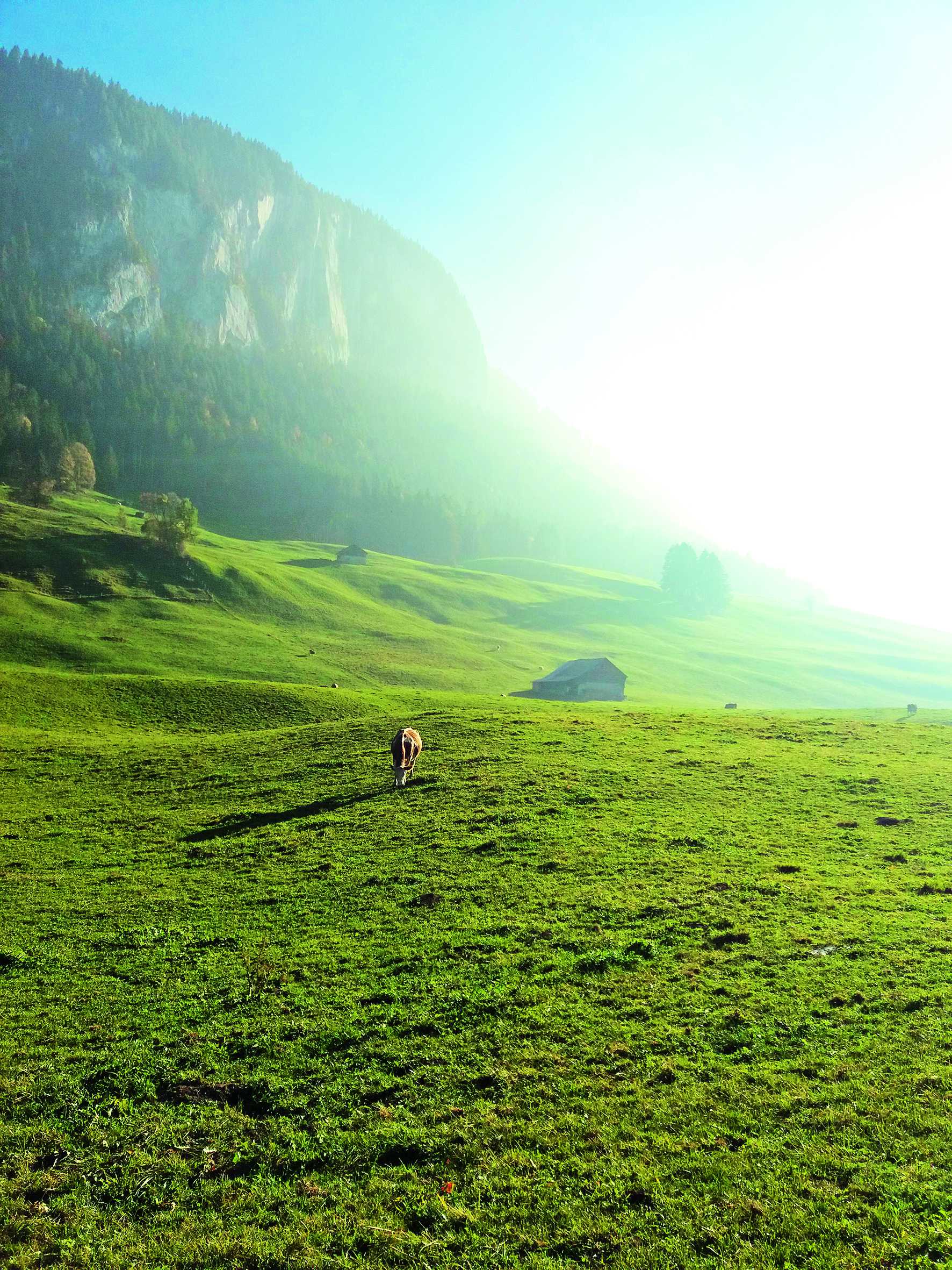 Au départ de L’Etivaz, fief du goûteux fromage AOP, balade entre forêts et pâturages au milieu des vaches laitières.